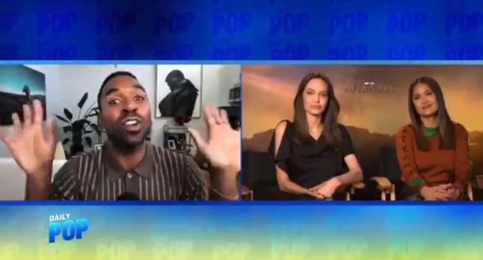 Trong quá trình trò chuyện, người dẫn chương trình hỏi: “Bởi vì các con của Angelina đang ở độ tuổi có ý kiến riêng, vì vậy, tôi muốn biết, chúng thích thú hơn khi cô tham gia Eternals hay là trở thành bạn với The Weeknd?”.