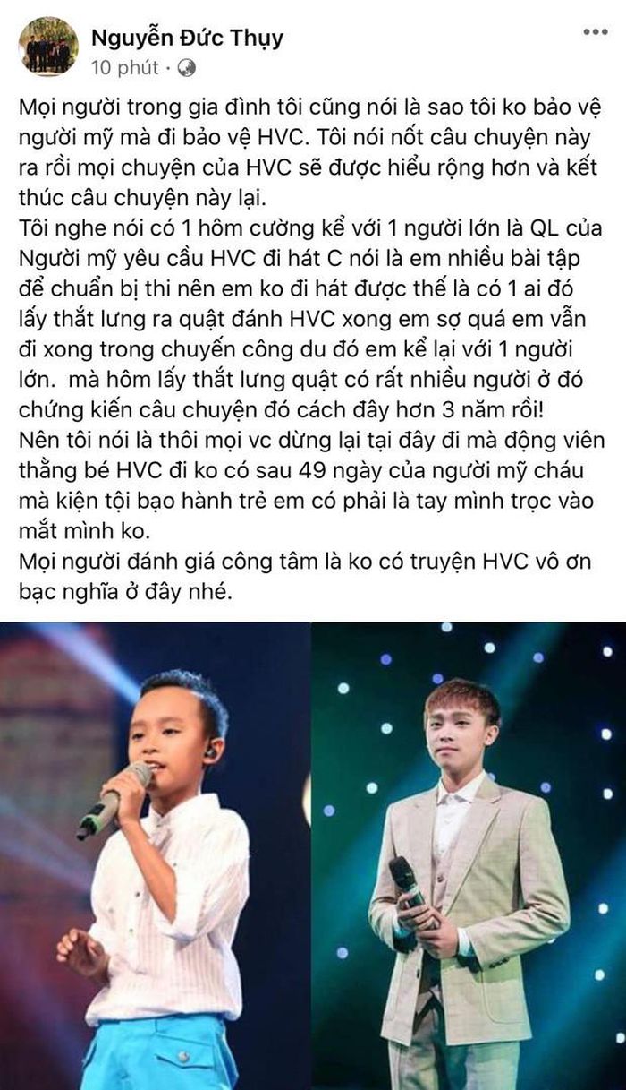 Chiều ngày 26/10, Bầu Thụy đã có tiết lộ gây sốc về việc Hồ Văn Cường bị chèn ép phải đi hát. Trên trang cá nhân của mình, ông cho biết có ai đó đã dùng thắt lưng đánh Hồ Văn Cường sau khi nam ca sĩ từ chối đi hát với lý do làm nhiều bài tập để chuẩn bị kì thi.