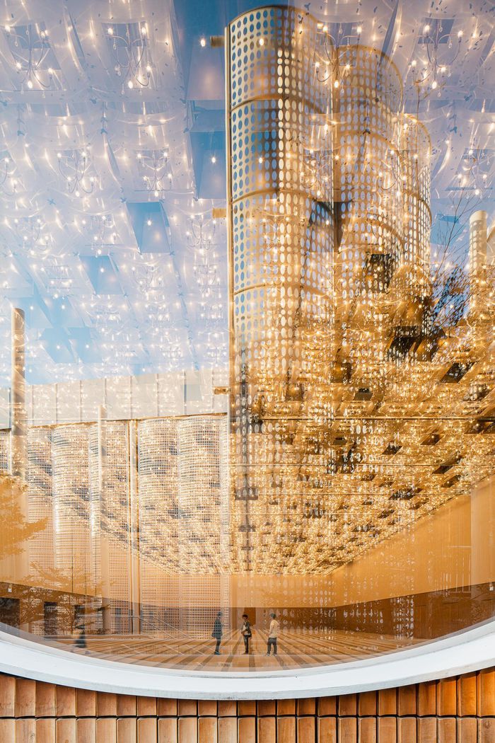 Đường uốn lượn bên trong công trình kết hợp mặt trần tráng gương làm tăng gấp đôi chiều kích không gian, khiến không gian trở nên vô tận.