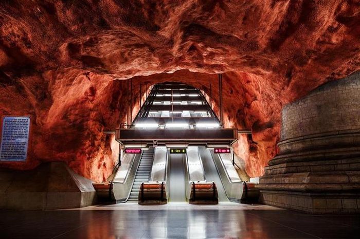 Hệ thống tàu điện ngầm ở nơi đây được cho là tuyệt vời nhất trên thế giới. Ghé thăm bất kỳ nhà ga nào của Stockholm, ví dụ Radhuset (trong ảnh) giống như đi đến một phòng trưng bày nghệ thuật, thậm chí còn có các chuyến tham quan có hướng dẫn đưa bạn đi khắp các điểm dừng đáng chú ý nhất.