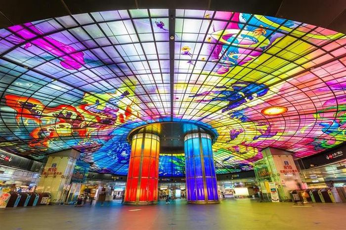 Trần kính giống như kính vạn hoa ở nhà ga Formosa Boulevard được cho là công trình kính lớn nhất thế giới. Bao gồm 4.500 tấm kính, nó được thực hiện bởi nhà thiết kế người Ý Narcissus Quagliata, người đã gọi tác phẩm này là Gió, Lửa và Thời gian.