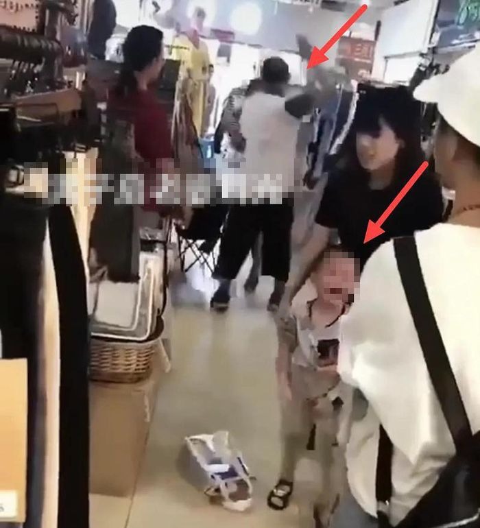 Thấy bố đánh mẹ, đứa trẻ sợ hãi khóc thét. Một khách hàng ở đó phải kéo bé sang một bên và dỗ dành. Nhân viên bán hàng và những khách khác thì ra sức can ngăn người đàn ông.