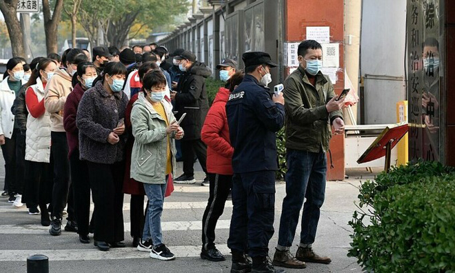 Người dân Bắc Kinh, Trung Quốc, xếp hàng chờ tiêm mũi tăng cường vaccine Covid-19. Ảnh: AFP.
