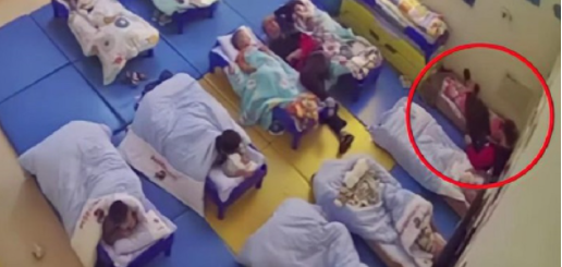 Cụ thể, trong giờ nghỉ trưa, như thường lệ. chị Trương mở video trên điện thoại để theo dõi con gái Tiểu Vương (3 tuổi 4 tháng) đang theo học tại trường mầm non. Đột nhiên chị phát hiện 1 cô giáo có hành vi thô lỗ với các bé trong phòng. Đặc biệt là với con gái chị, cô giáo đã dùng băng dính cố định em bé vào chăn bông khiến bé không cử động được trong giờ ngủ trưa. Thậm chí cô còn gác chân lên người con gái của chị.