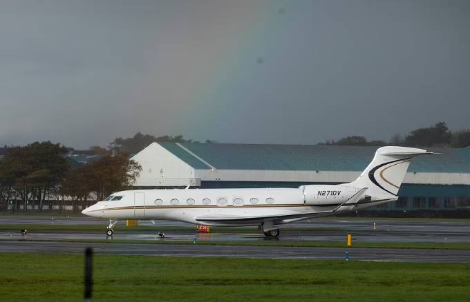 Chuyên cơ của tỷ phú Bezos hạ cánh ở sân bay Prestwick, Scotland hôm 31/10. Ảnh: DM