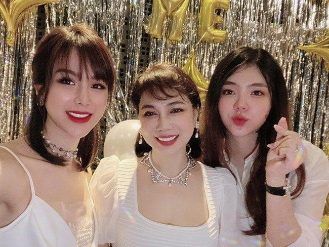 Cận cảnh vẻ đẹp không tuổi của nữ đại gia Sài thành. Diệp Lâm Anh từng chia sẻ, mẹ chồng là người rất tâm lý, thoải mái, cô được bà yêu thương, xem như con gái ruột.
