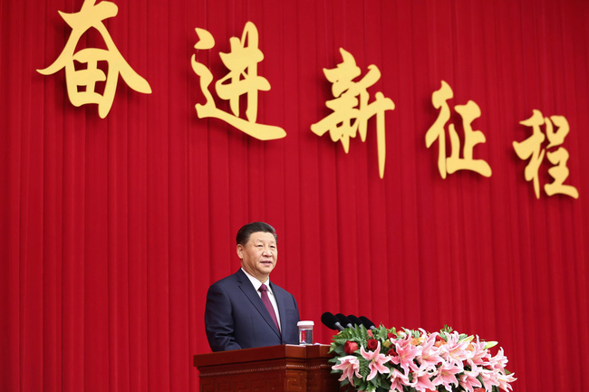 Chủ tịch Tập Cận Bình tuyên bố ĐCSTQ sẽ thúc đẩy “thịnh vượng chung”. Ảnh: AP