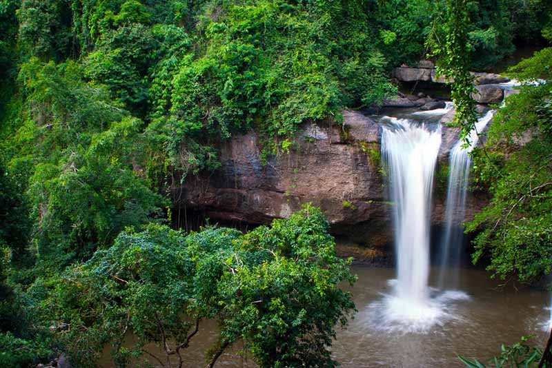 Thác Haew Suwat ở trong công viên Quốc gia Khao Yai, một trong những nơi được du khách ghé đến nhiều nhất ở Thái Lan. Thác nước ở đây đổ xuống từ vách đá, tạo thành một hồ bơi bên dưới, xung quanh là rừng rậm với nhiều loài động vật hoang dã sinh sống.
