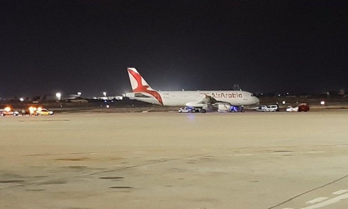 Máy bay Air Arabia tại sân bay Palma de Mallorca. Ảnh: Twitter/adamantium119.