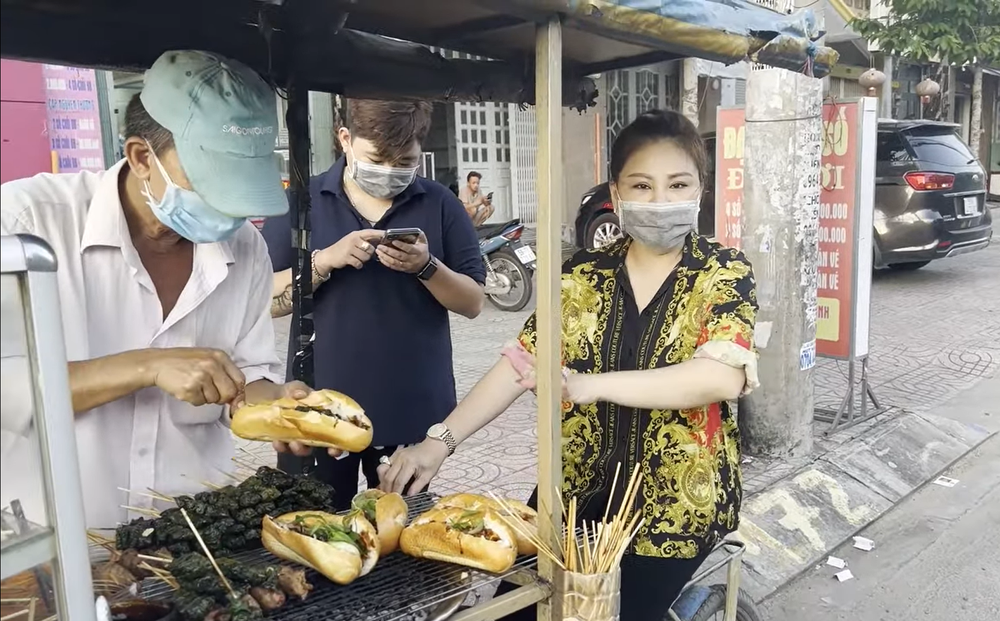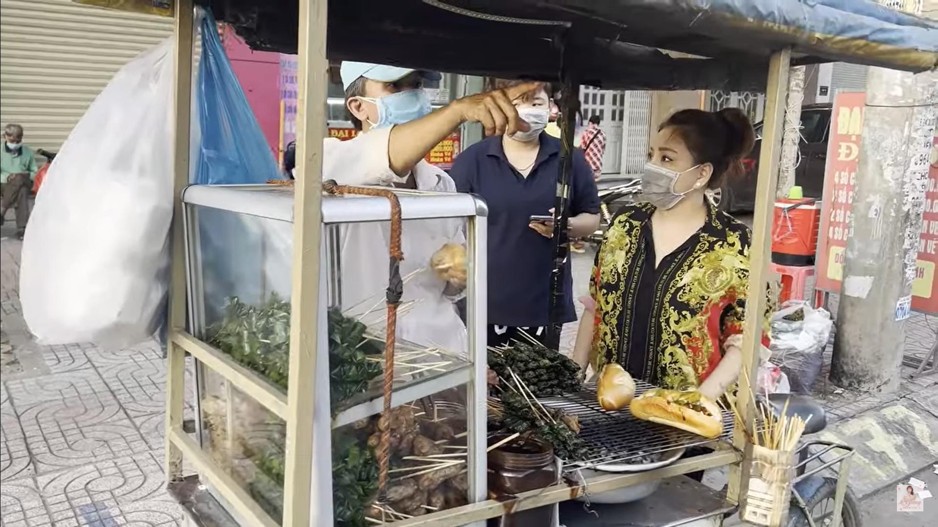 "Chú này là chú bán bánh mỳ bò lá lốt, thịt nướng gần nhà tôi, ngày nào cũng đứng bán bên đường như thế này. Mấy đứa cháu nhà tôi lúc nào cũng sang mua ủng hộ chú.