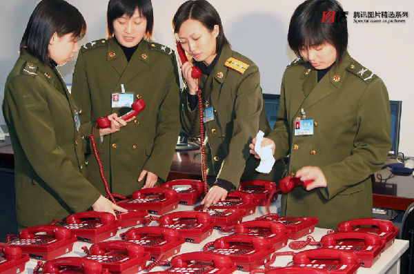 Ngày 1/3/2006, các nữ quân nhân thuộc Bộ Tổng tham mưu Trung Quốc đang kiểm tra thiết bị liên lạc kỳ họp Lưỡng hội Trung Quốc tại khách sạn Kinh Tây.