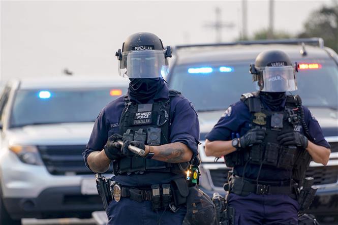 Hơn 25% trong số 16.000 nhân viên Sở Cảnh sát hạt Los Angeles - sở cảnh sát lớn nhất Mỹ - có thể bị mất việc do từ chối tuân thủ yêu cầu tiêm chủng bắt buộc vaccine ngừa COVID-19. Ảnh: TTXVN phát