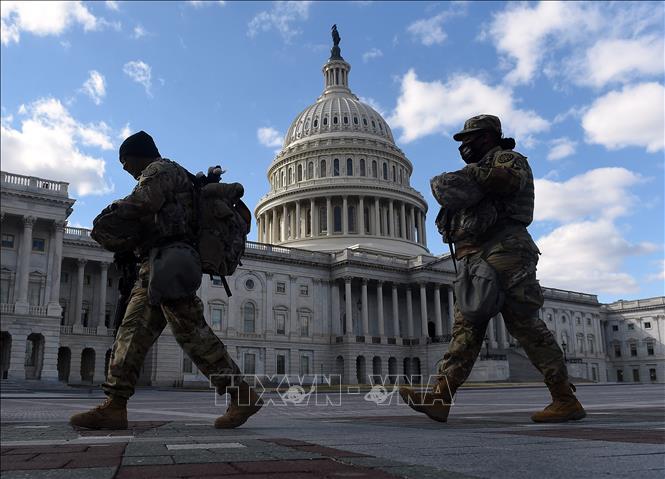 Lực lượng Vệ binh quốc gia Mỹ tuần tra tại Đồi Capitol ở Washington, DC ngày 6/3/2021. Ảnh: AFP/TTXVN