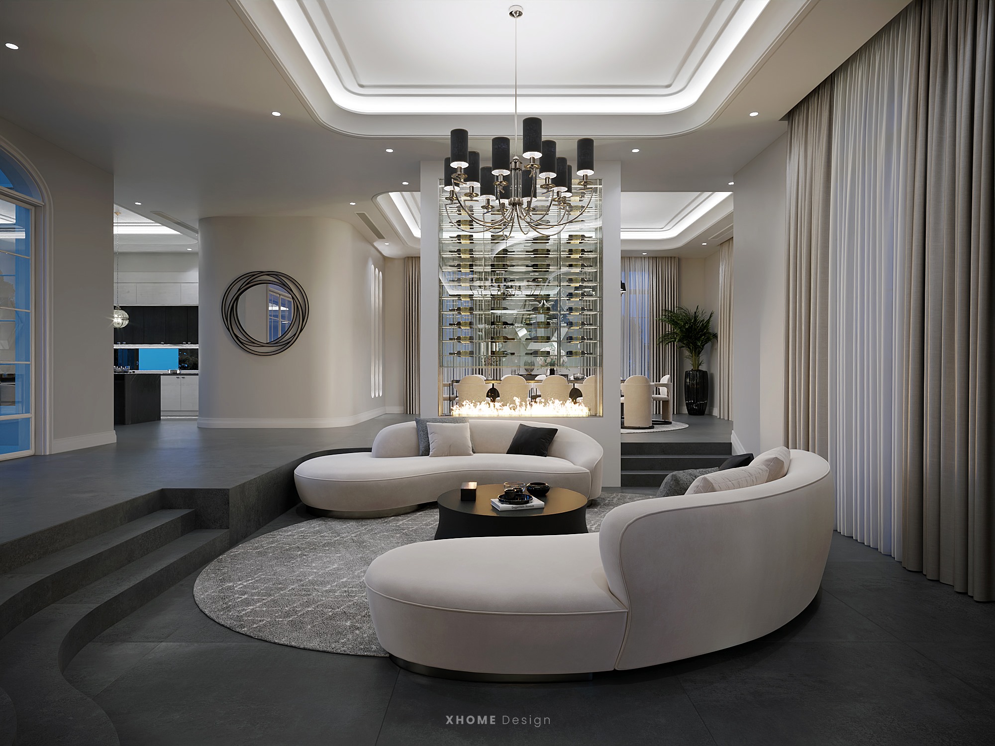 Dù mới chỉ trên bản vẽ, nhưng những phác thảo về toàn bộ nội - ngoại thất căn biệt thự khiến mọi người phải trầm trồ nức nở vì mức độ hoành tráng, tiện nghi, sang trọng. Điều đặc biệt nhất, tầng 1 căn biệt thự còn có hẳn một không gian được sử dụng làm sân khấu để Vân Dung diễn hài cho cả nhà xem.