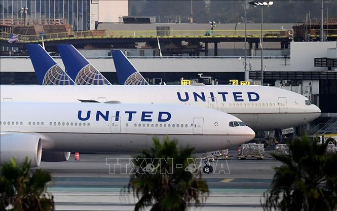 Máy bay của Hãng hàng không United Airlines tại sân bay quốc tế Los Angeles, California, Mỹ. Ảnh: AFP/TTXVN
