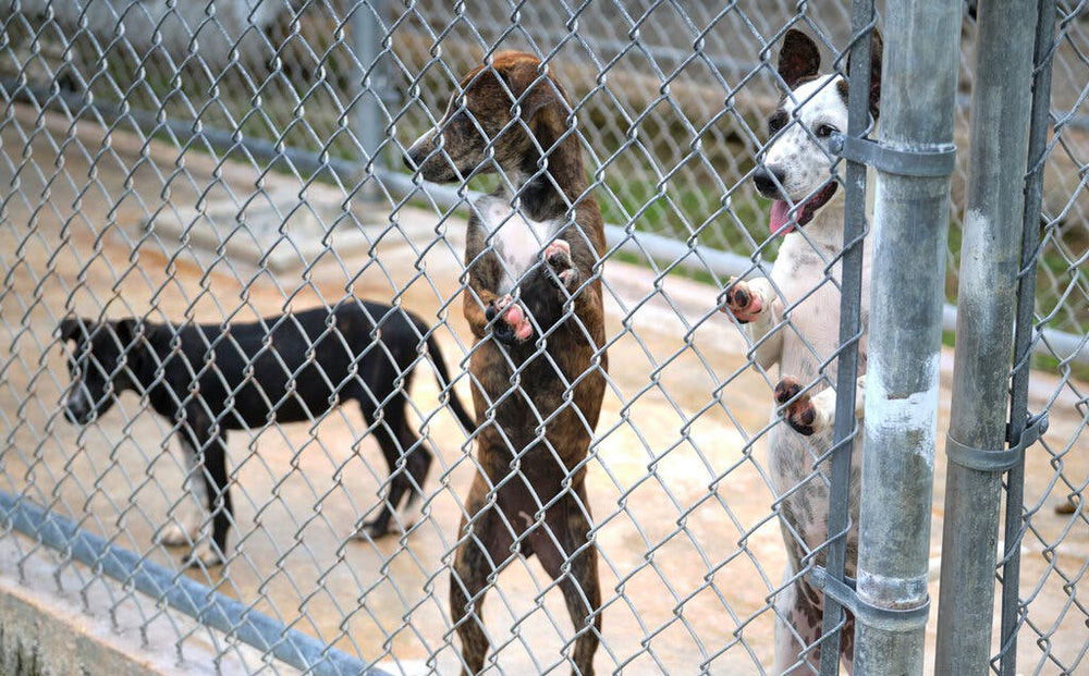 Những chú chó hoang bị bắt nhốt tại khu "Guam Animals in Need". Ảnh: NYTimes