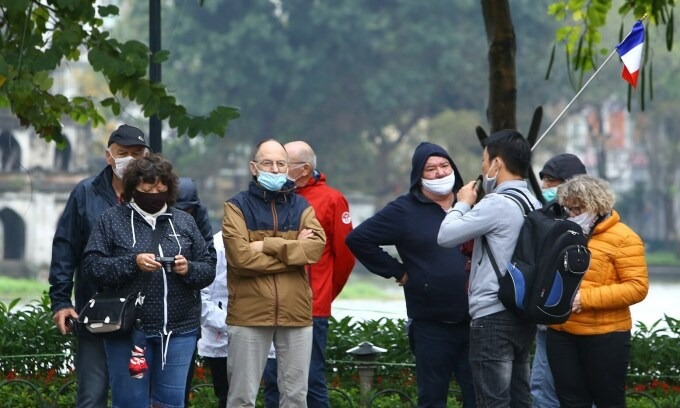 Một nhóm du khách nước ngoài ở Hà Nội. Ảnh: TTXVN.