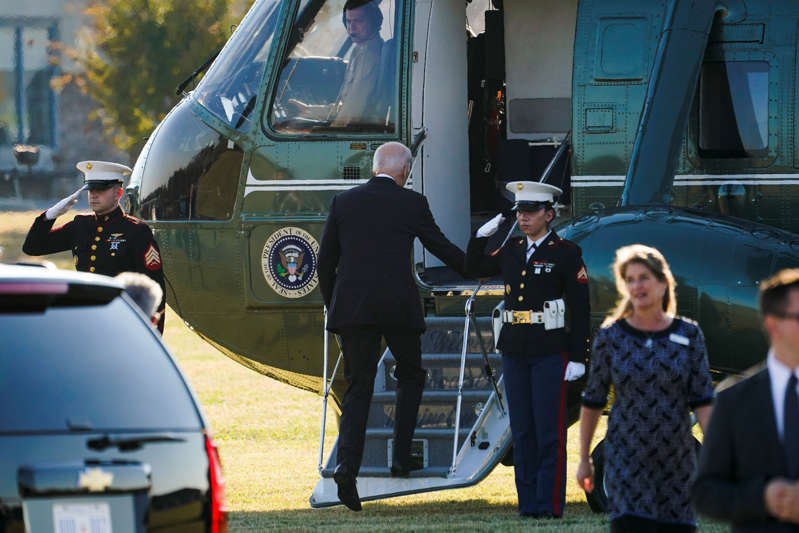 President Joe Biden boards Marine One in Milford, Del., Wednesday, Nov. 10, 2021, to travel to Baltimore, Md., to tour the Port of Baltimore after attending the funeral of former Delaware Gov. Ruth Ann Minner at the Church of Nazarene. (AP Photo/Andrew Harnik)© Provided by Associated Press President Joe Biden boards Marine One in Milford, Del., Wednesday, Nov. 10, 2021, to travel to Baltimore, Md., to tour the Port of Baltimore after attending the funeral of former Delaware Gov. Ruth Ann Minner at the Church of Nazarene. (AP Photo/Andrew Harnik)