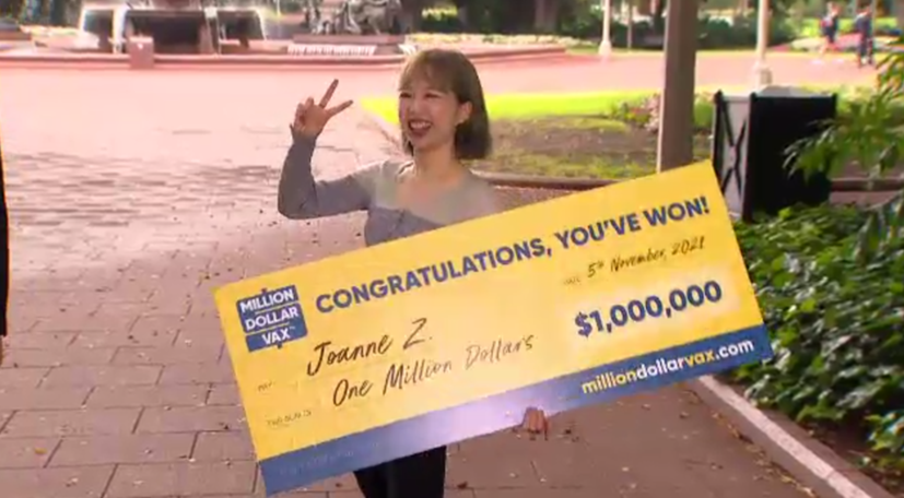Nữ sinh trúng xổ số vaccine 730.000 USD. Đó là sinh viên gốc Hoa Joanne Zhu ở Sydney. Cô sinh viên cho biết sẽ mua quà cho gia đình và đầu tư sau khi trúng xổ số vaccine hơn 730.000 USD.