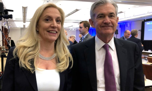 Thống đốc Cục Dự trữ Liên bang Lael Brainard (trái) cùng Chủ tịch Cục Dự trữ Liên bang Jerome Powell (phải). Ảnh: The Guardian.