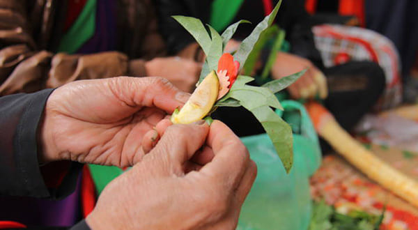 Nội dung truyện kể rằng có một ông lâu ngày đến chơi nhà ông bạn thân. Hai người gặp nhau trò chuyện rôm rả. Chủ nhà mới tìm trầu để mời khách nhưng trong cơi trầu thì chỉ còn mỗi một miếng. Chủ mời mãi thì khách đành phải ăn. Cách một thời gian không lâu sau đó, ông này vì nhớ bạn nên lại đi sang thăm trả. Thấy bạn đến chơi nhà, ông kia mừng rỡ, mời bạn lên nhà ngồi. Lại trò chuyện rôm rả. Bạn đến chơi nên ông này cũng đi tìm trầu để mời bạn, nhưng lạ thay khi đem ra giữa cơi trầu lại chỉ có một miếng trầu và khẩn khoản mời bạn xơi. Ông khách khen cơi trầu đẹp và nể lời cầm miếng trầu kia lên ngắm và thắc mắc rằng thứ cau của chủ nhà chắc bổ vào dịp trời mưa nên nó lắm xơ nhỉ? Thì chủ nhà lại trả lời rằng đó chính là miếng trầu mà ông khách đã mời hôm trước vì ông ngậm trong miệng nên nó hơi bị giập ra.