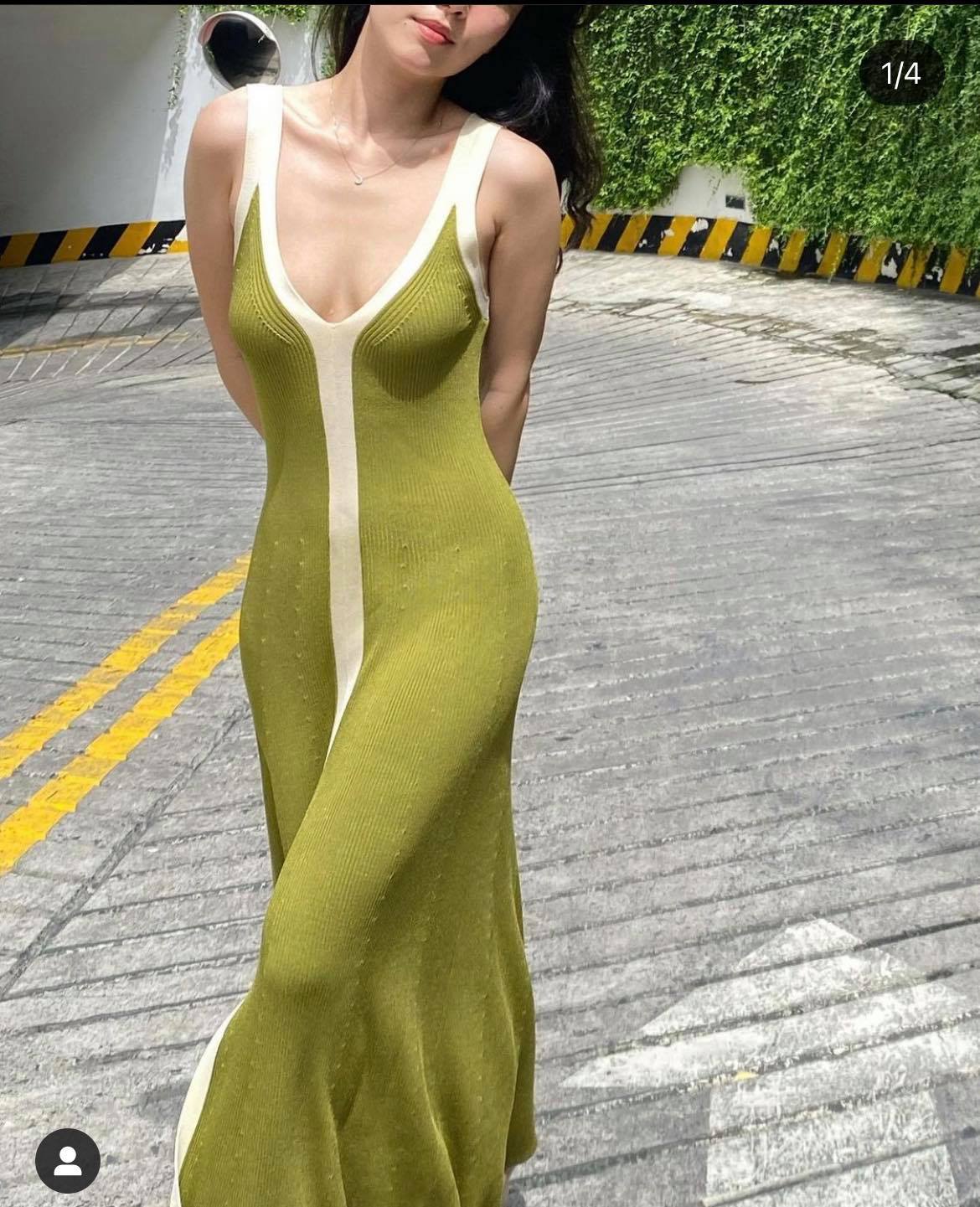 Mặc chiếc váy màu xanh tôn đường cong hình thể, Hà Trúc được bạn bè và người hâm mộ nô nức xinh địa chỉ mua.