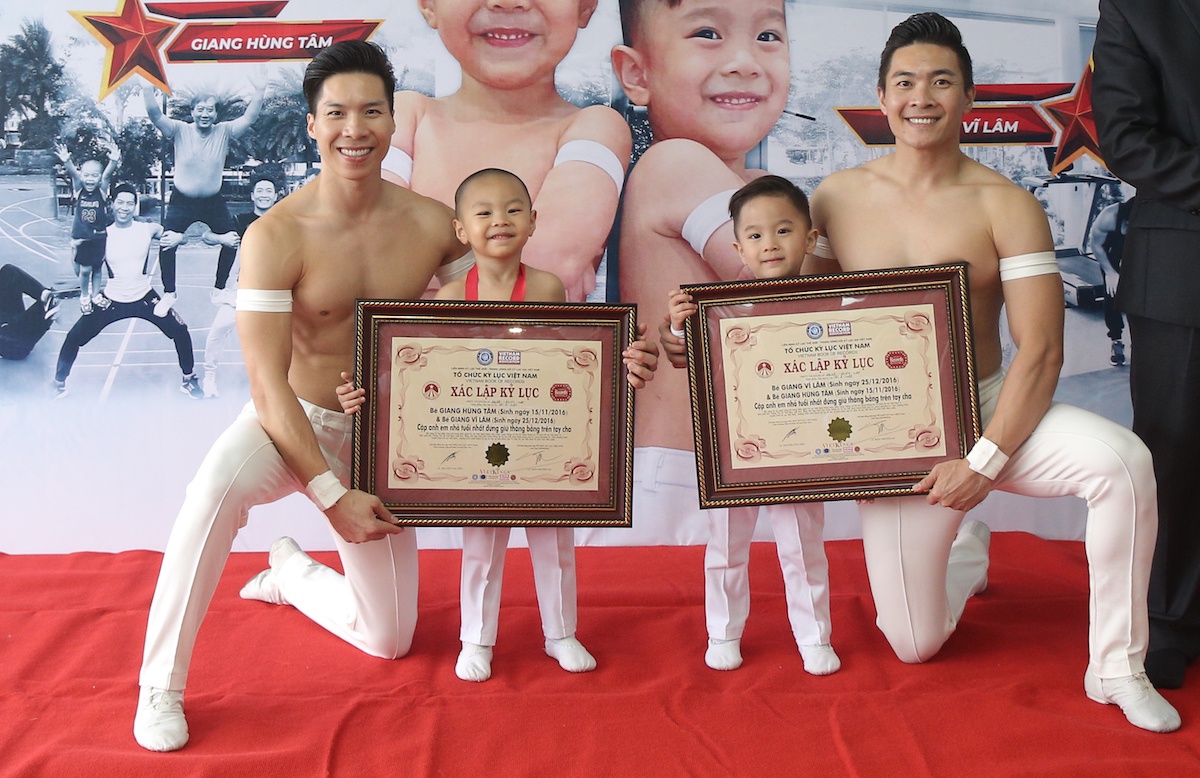 Hai con của Quốc Cơ - Quốc Nghiệp cũng nối gót cha lập kỷ lục xiếc khi còn nhỏ. Ảnh: NVCC.