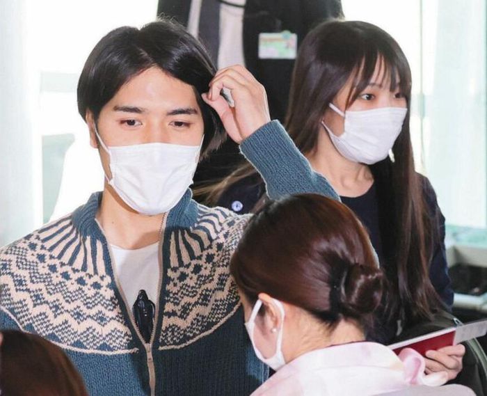 Kei Komuro đi trước không để ý nhiều đến Mako cùng mái tóc nữ tính của anh giống với nữ nhân viên phụ trách.