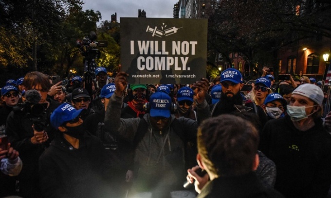 Những người bài vaccine tham gia một cuộc biểu tình phản đối tiêm chủng ở thành phố New York hôm 13/11. Ảnh: AFP.
