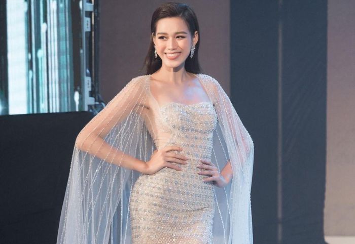 Năm nay Đỗ Thị Hà mang theo hai bộ váy dạ hội để chuẩn bị cho đêm chung kết Miss World 2021. Bộ trang phục đầu tiên với tông màu trắng lấy ý tưởng từ những vì sao lấp lánh trên dải ngân hà. Đặc biệt, 3000 viên đá pha lê được đính thủ công trên nền vải lưới cao cấp bởi 5 thợ đính trong vòng 1200 giờ đồng hồ. Điểm nhấn của thiết kế này là chiếc áo choàng xuyên thấu mang tới vẻ kiêu sa, quyền lực.