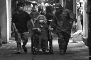 Tiếng bánh xe lăn gõ xuống mặt đường nhựa hòa với tiếng thở dốc của nhân viên y tế. Bước chân của anh gấp gáp khi đẩy bà lão băng theo lề đường Lê Văn Duyệt (quận Bình Thạnh, TP.HCM). Bà cụ nhiễm SARS-CoV-2 và đã phải chịu đựng cơn khó thở suốt 2 giờ trước khi được đưa ra khỏi nhà.