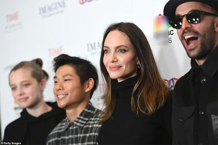 Pax Thiên còn thoải mái ôm eo Angelina. Cả hai mẹ con rất tình cảm.