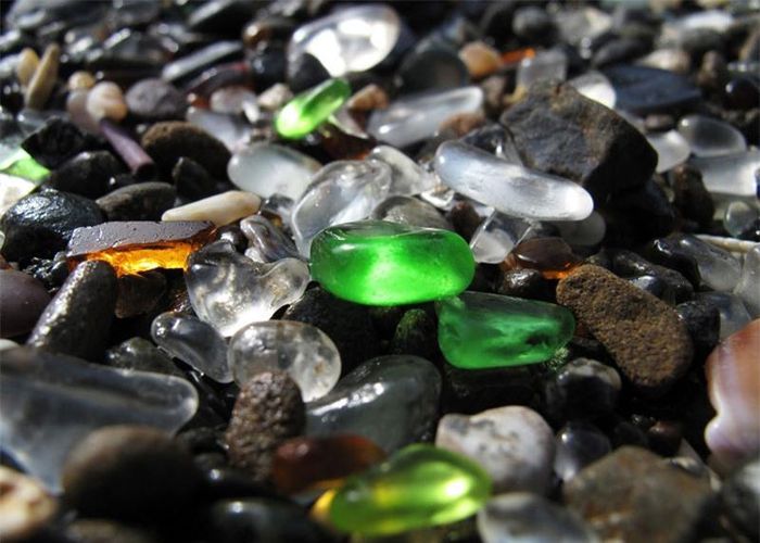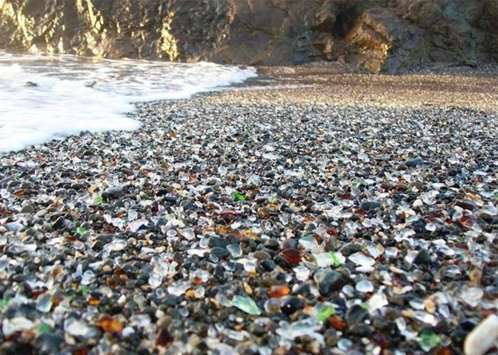 Một bãi biển nằm gần Fort Bragg, ở phía bắc bang California, trải dài với những mẩu thủy tinh đủ hình dáng, kích cỡ, màu sắc lung linh dưới ánh nắng mặt trời tựa như những viên pha lê tuyệt đẹp.