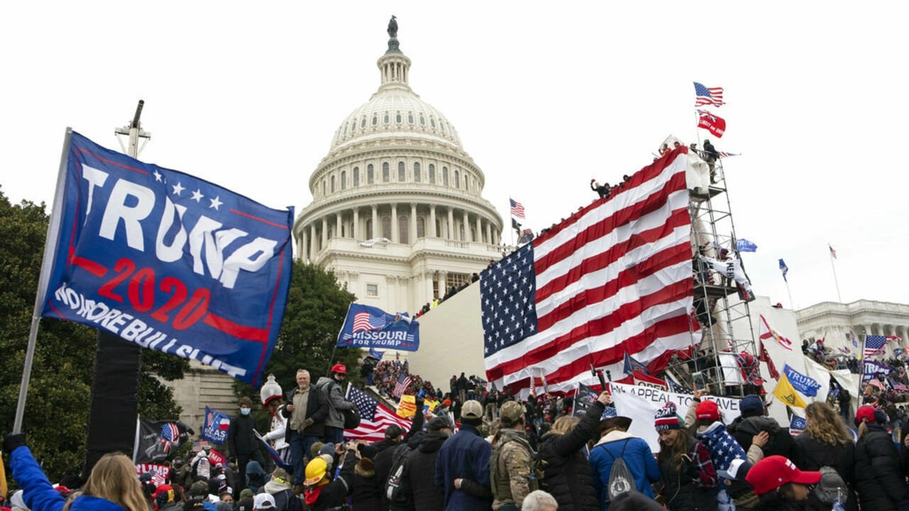 Hoa Kỳ lần đầu tiên bị xếp trong những nước dân chủ tụt hậu. Ảnh tư liệu : Người biểu tình ủng hộ tổng thống Trump tràn vào chiếm nhà Quốc Hội trên đồi Capitol, Washington, hôm 06/01/2021. © AP /Jose Luis Magana