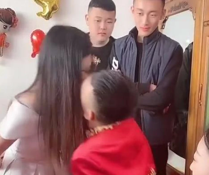 Theo như lúc ấy, hai bên đang chơi trò “chuyền giấy bằng miệng”, tức hai người sẽ đứng đối diện nhau và chuyển – nhận tờ giấy nhỏ bằng cách cắn do phong tục truyền thống Trung Quốc, chú rể phải vượt qua thử thách của nhà gái và phù dâu mới có thể đón vợ về nhà.