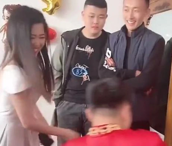 Đoạn clip được đăng tải trên mạng hôm 11/11 đã lan truyền với tốc độ chóng mặt. Qua video, có thể thấy đây là phần “thử thách” chàng rể mới trong một đám cưới ở Gia Hưng, tỉnh Chiết Giang.