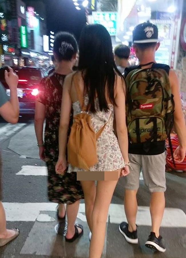 Các chị em châu Á cũng lăng xê triệt để thời trang tôn vòng 1 khi đi chơi phố vào buổi tối.