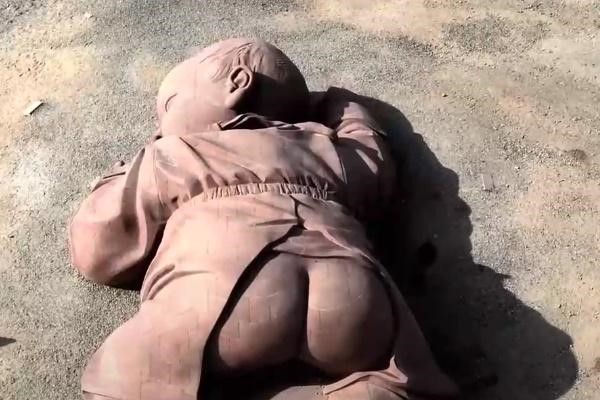 Tác phẩm điêu khắc này có tên là “con của Trái đất”, nằm ở sa mạc Gobi, tỉnh Cam Túc, Trung Quốc. Người tạo ra thiết kế là Giáo sư Dong đến từ Đại học Thanh Hoa. Từ việc đề xuất ý tưởng đến xây dựng bức tượng, tất cả các chi phí cần thiết trong quá trình đều do giáo sư tự bỏ tiền túi. Bức tượng hoàn thành thể hiện hình ảnh một em bé khổng lồ nằm trơ trọi giữa sa mạc, cao tới 4,3 mét, dài 15 mét và rộng 9 mét.