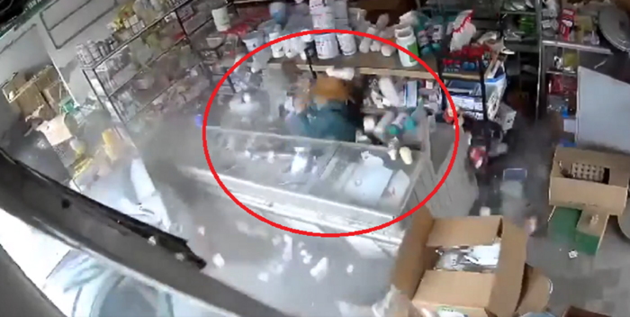 Cú tông khá mạnh, khiến tủ kính cùng các loại thuốc văng tung tóe. Một phần tủ kính đã ép sát vào phía người phụ nữ, tuy nhiên, may mắn người phụ nữ không gặp tai nạn nghiêm trọng nào.