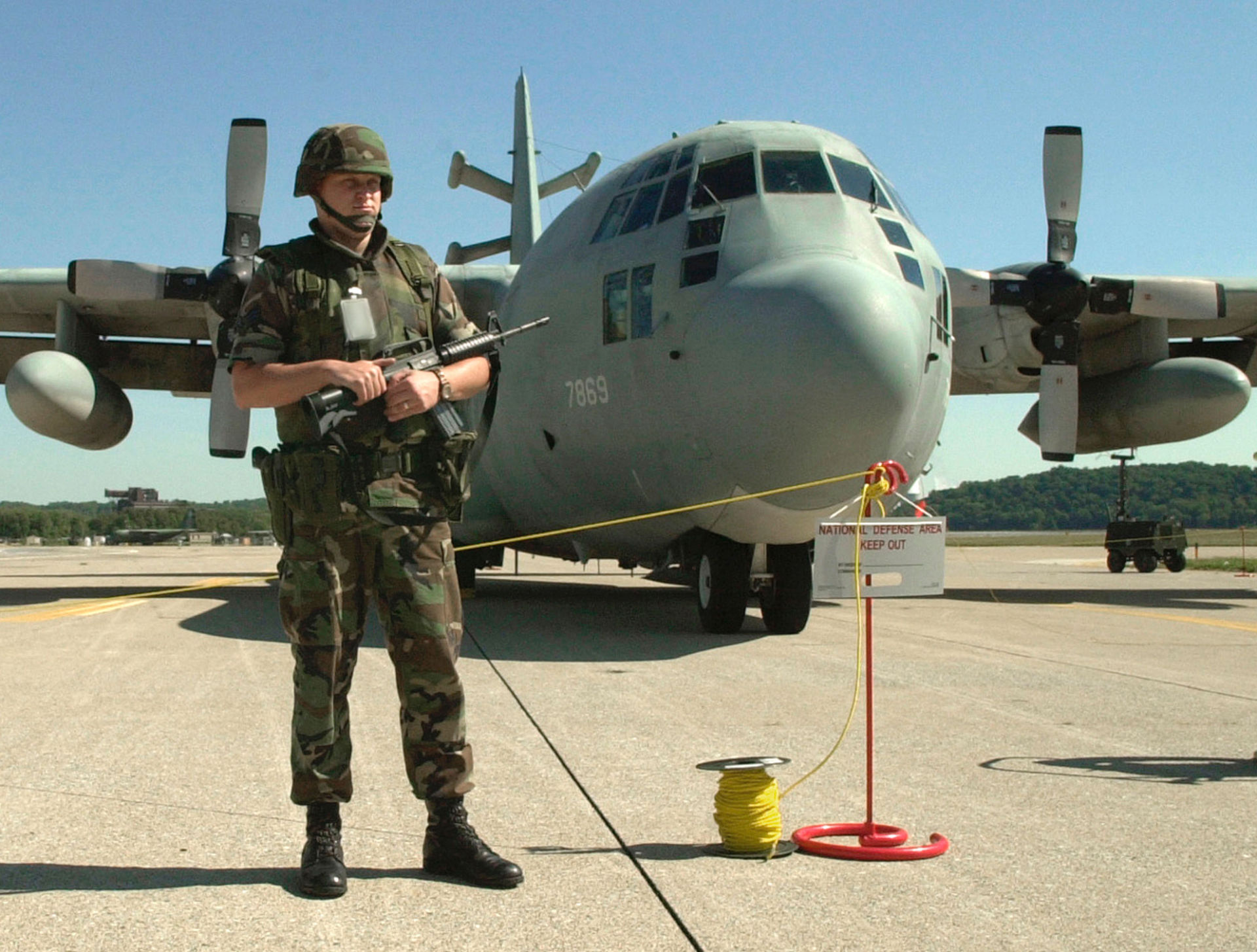 Một quân nhân lực lượng Air Force Security Forces, chuyên trách bảo vệ phi trường và máy bay quân sự. (H́nh minh hoạ: David Hawkins/U.S. Air Force/Getty Images)