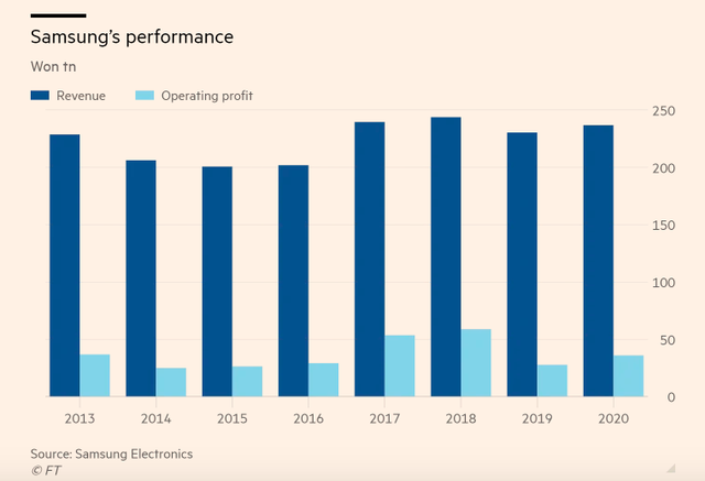 Nhưng các nhà đầu tư lo ngại công ty đã mất vị thế trước các đối thủ và thiếu một chiến lược tăng trưởng rõ ràng. Tiền mặt của công ty hiện đạt 102 tỷ USD trong quý thứ ba, vượt xa đối thủ Intel của Mỹ là 7,9 tỷ USD và tập đoàn chip khổng lồ TSMC của Đài Loan là 31 tỷ USD.
