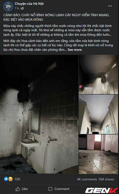 Mới đây, trên một nhóm Facebook với hơn 1,7 triệu người đăng ký đã lại có một cảnh báo về sự cố bình nóng lạnh. Bài đăng nhanh chóng thu hút được lượng tương tác rất lớn với hơn 4000 bình luận và gần 600 lượt chia sẻ chỉ sau 6 giờ đồng hồ. Nội dung của bài viết như sau: