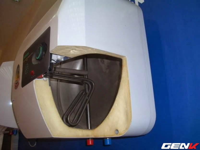 Bình chứa nước thường được làm bằng kim loại dày để có thể chịu được áp suất cao khi nước bị đun nóng gây ra.