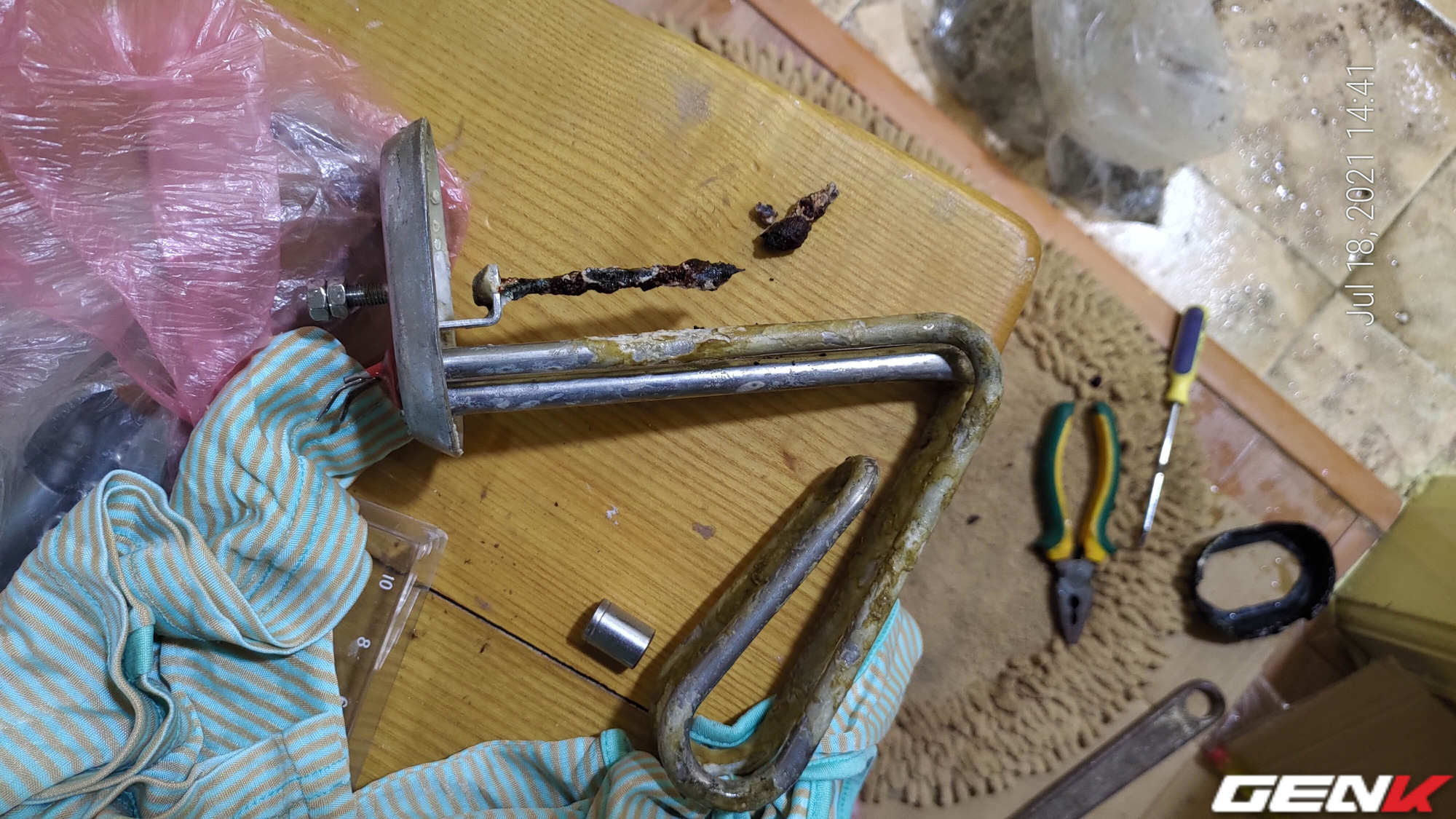 Thanh magie bị ăn mòn trong một chiếc bình nóng lạnh đã lâu không vệ sinh, bảo dưỡng