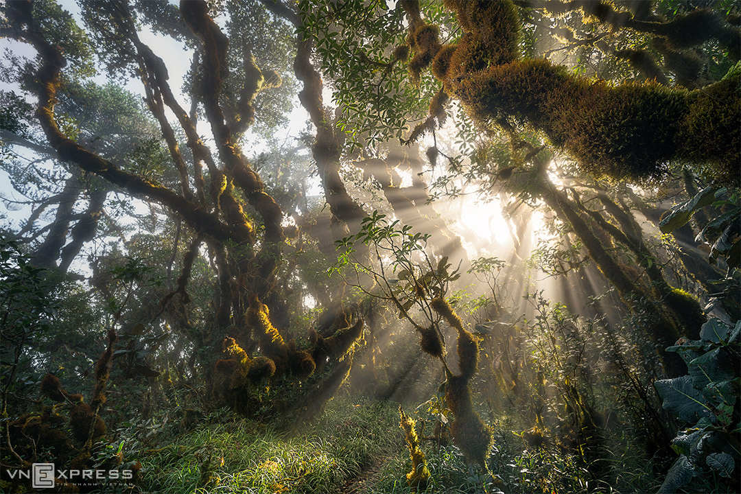 Vẻ ma mị của rừng nguyên sinh trên đường lên đỉnh Tà Xùa khiến Trần Văn Linh đắm chìm, quên đi chiếc balo nặng 15 kg trên người.