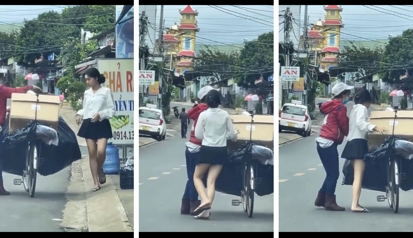Old  Default Khoảnh khắc cô gái chạy ra đường đón mẹ đi thu lượm ve chai gây bão mạng