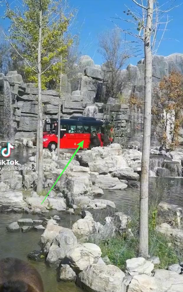 Thoạt nhìn video, nhiều người còn tưởng những nhân viên sở thú mặc đồ màu đen đang chạy theo chiếc xe buýt. Nhưng không, đó là 2 con gấu siêu to siêu bự đang đu theo du khách để... xin ăn. Netizen sau khi zoom lại gần mới phát hiện con vật lắm lông này còn chạy theo nhịp nhạc của Hồ Thiên Nga mới đáng sợ.