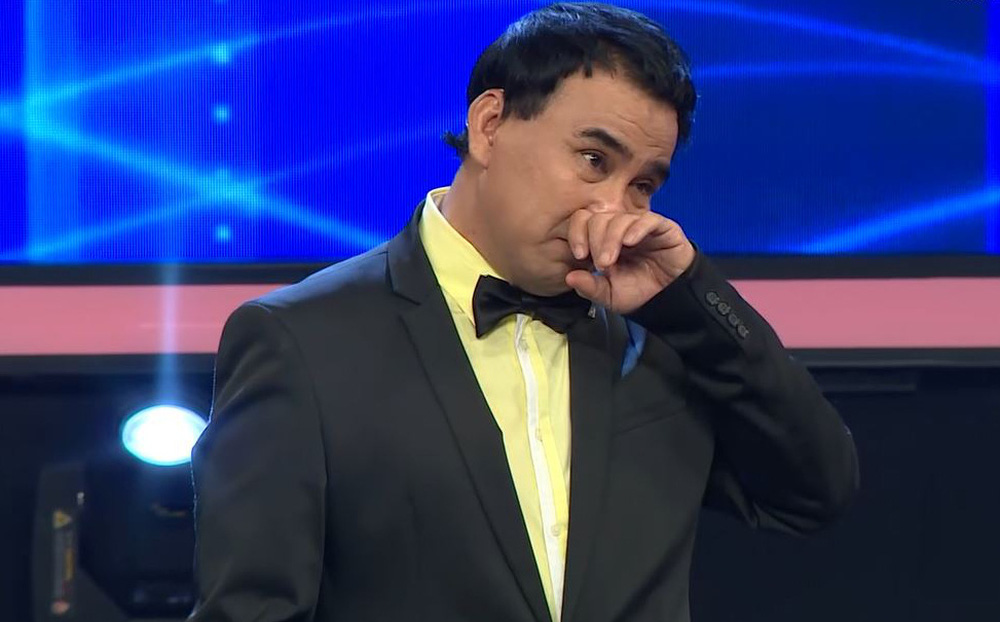 Nam MC đang định dẫn qua phần khác của chương trình thì bỗng dưng khựng lại rồi khóc nghẹn đến mức không thể nói nên lời.