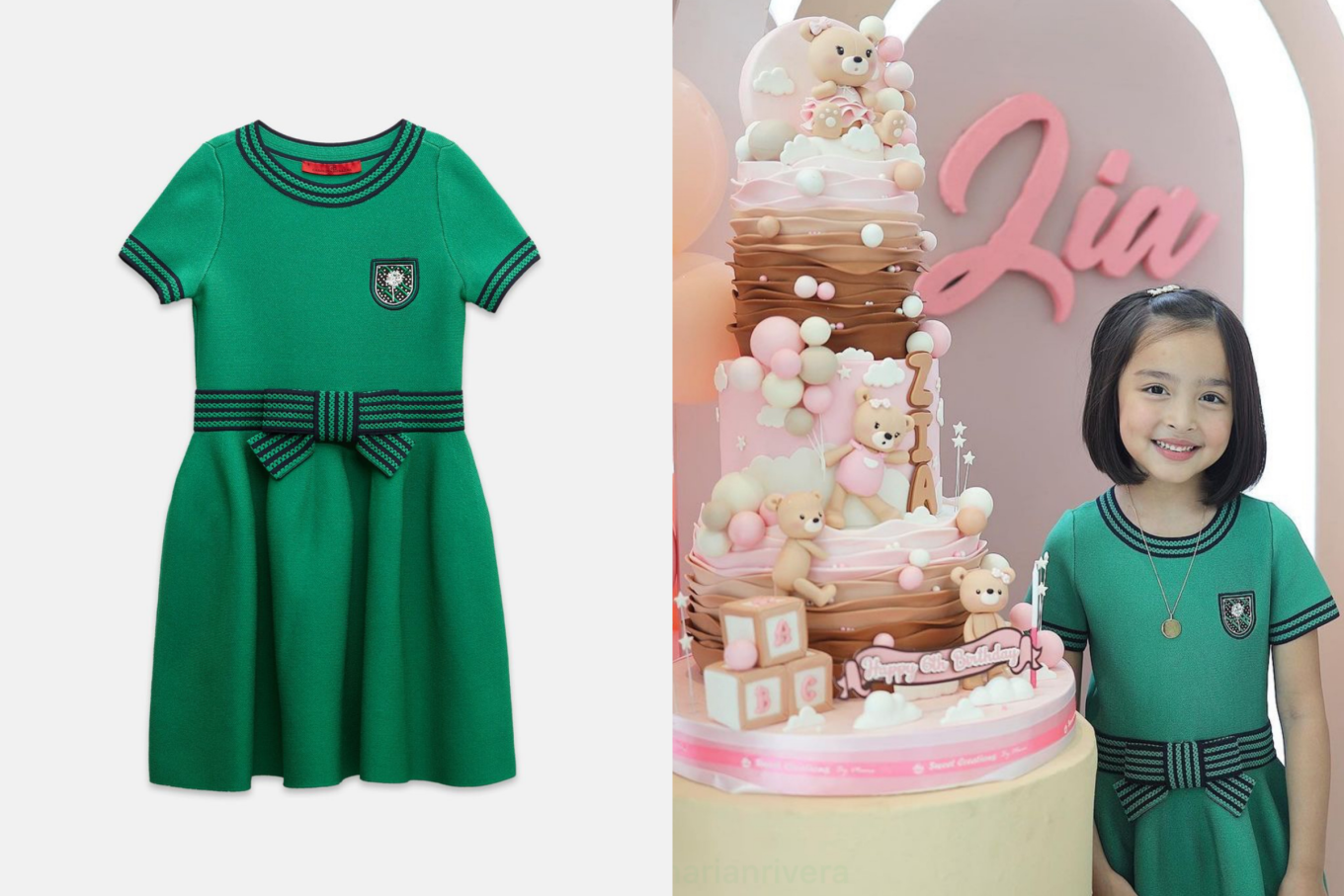 Trong loạt ảnh nghỉ dưỡng hôm 14/2 cùng gia đình, bé khoe sắc với thiết kế cổ vuông, bo tay. Trên Elle, Marian Rivera từng cho biết cát-xê của Zia cao hơn cô. Vợ chồng cô lập tài khoản ngân hàng để gửi tiền của con gái và trao lại khi bé trưởng thành.