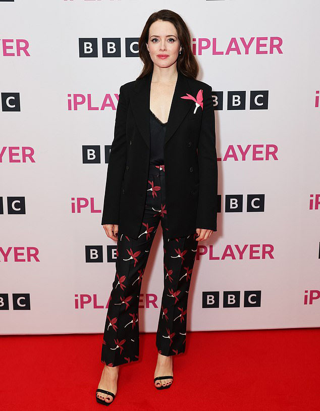 Diễn viên Claire Foy toát lên vẻ thanh lịch trong bộ suit họa tiết hoa mộc lan của Schiaparelli. Ảnh: BBC